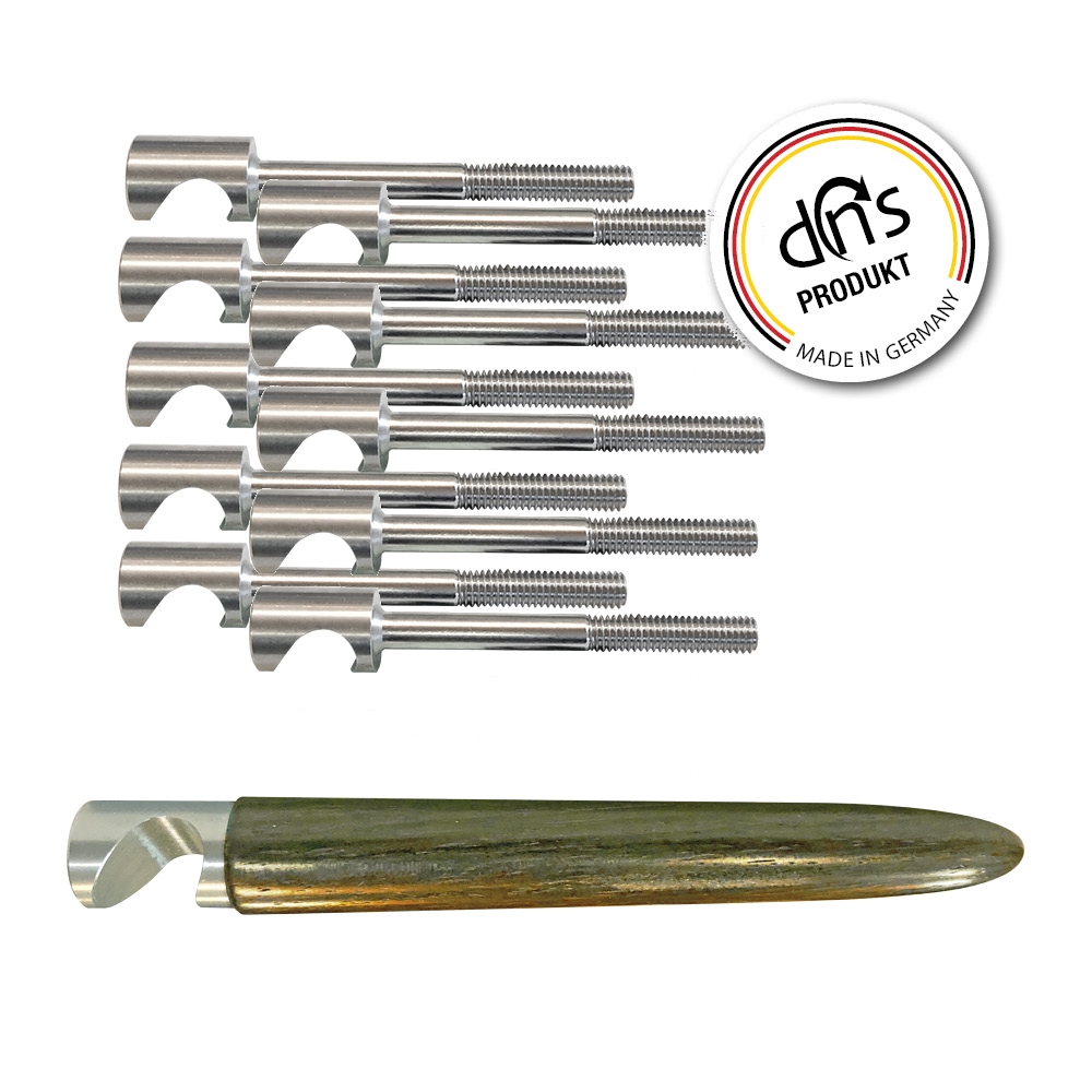 Angebot mit max. 11% Rabatt dns-Flaschenöffner Ø11 x 64 mm, 2 x 5 St. aus Edelstahl und gratis1 Minikantel Pockholz, ca. 75 mm lang