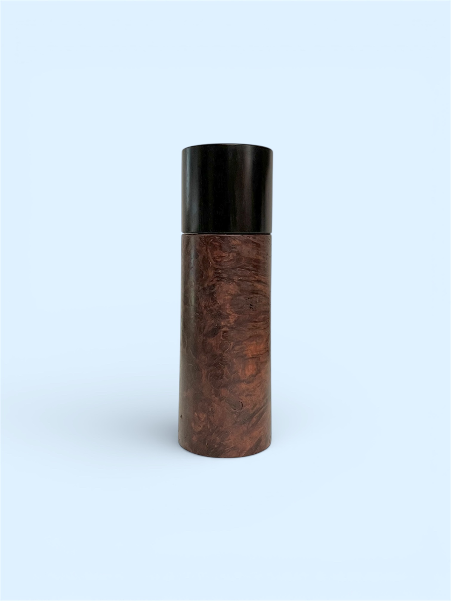 hier meine Pfeffermühle mit dem neuen Mahlwerk. Ich wollte etwas edles machen und habe Ambonia Maser und Ebenholz verwendet.