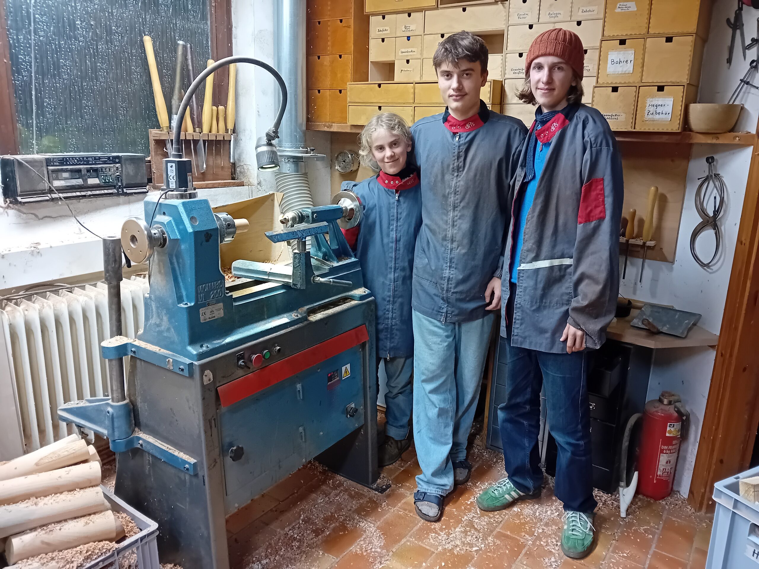 Hier ein Blick in unsere hintere Werkstatt,  in der es in letzter Zeit mit den beiden Männern ganz schön rund ging!
